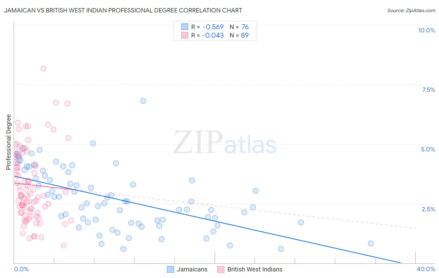 Demographics Similar to Jamaicans and British West Indians by Professional Degree