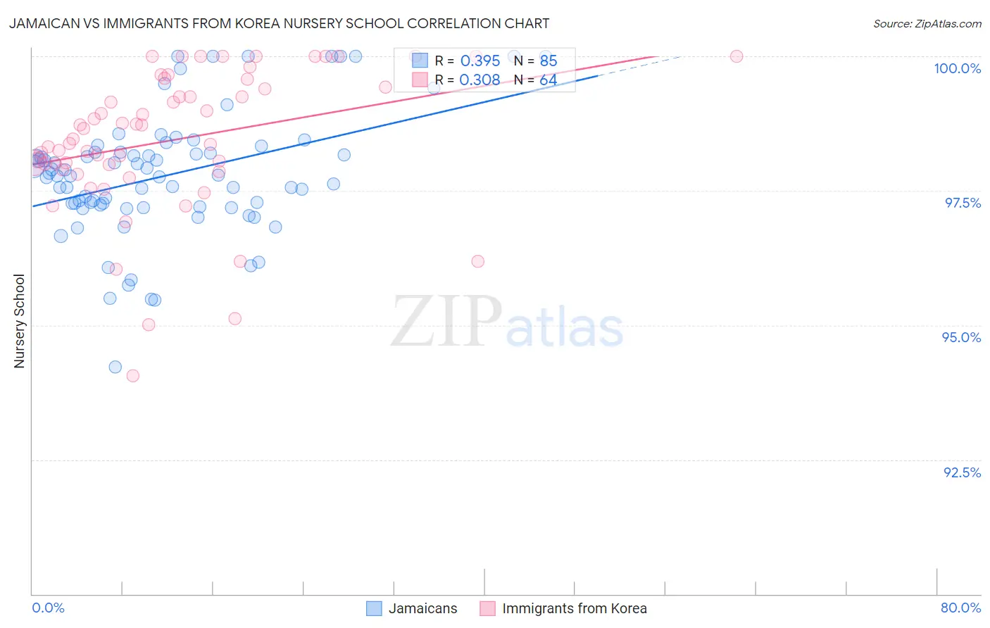 Jamaican vs Immigrants from Korea Nursery School Correlation Chart