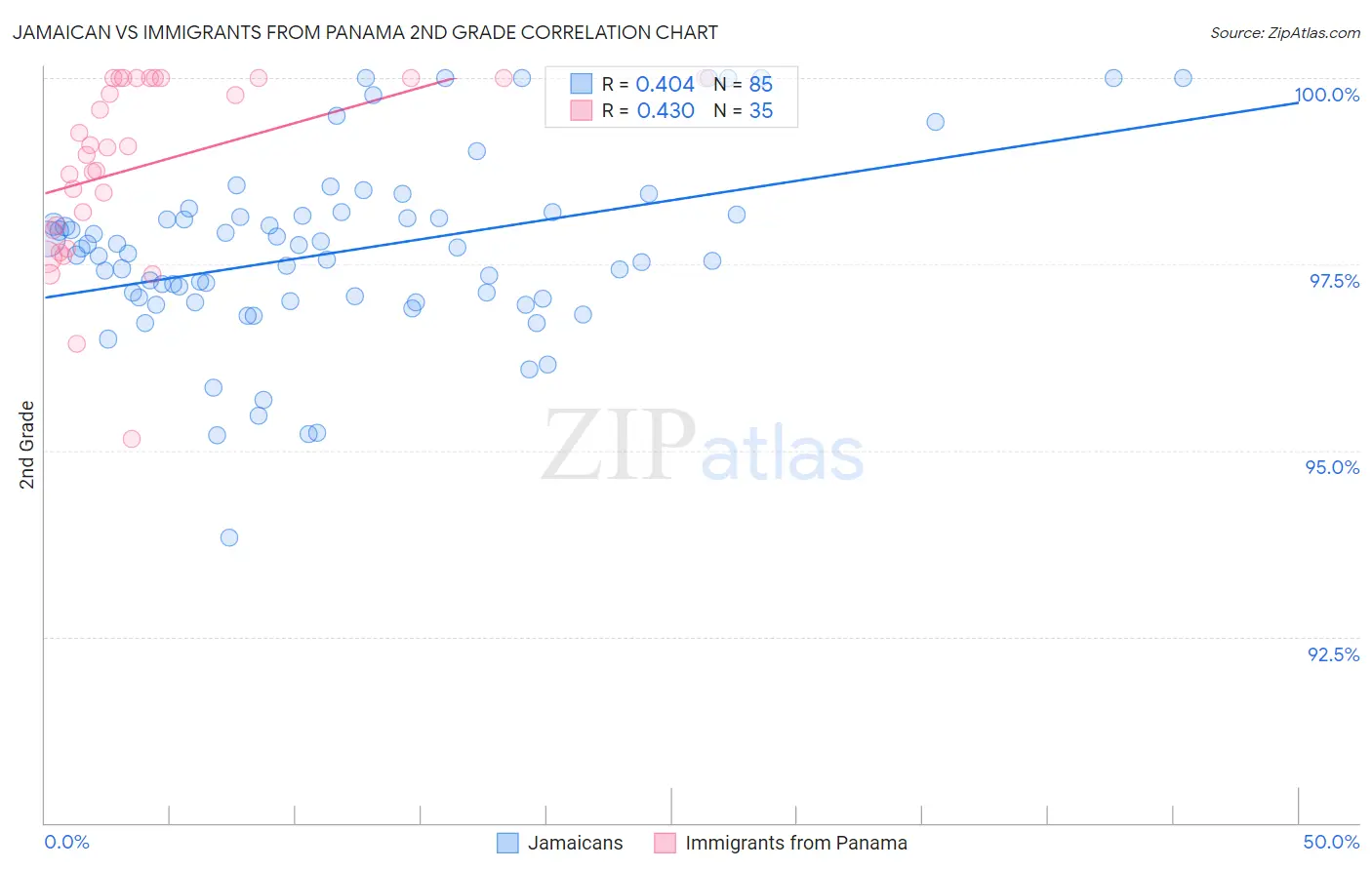 Jamaican vs Immigrants from Panama 2nd Grade Correlation Chart