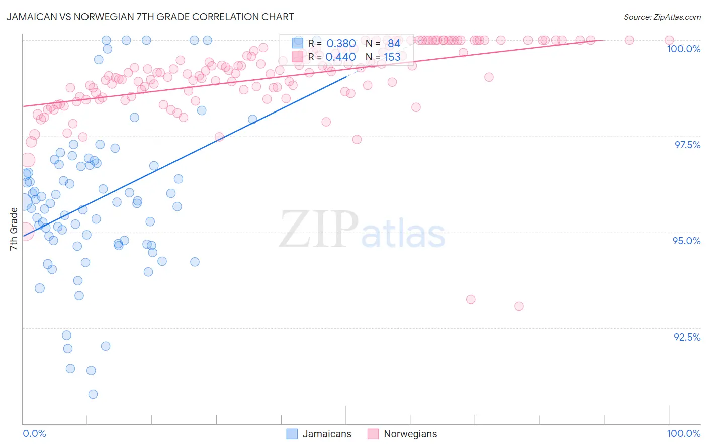 Jamaican vs Norwegian 7th Grade Correlation Chart