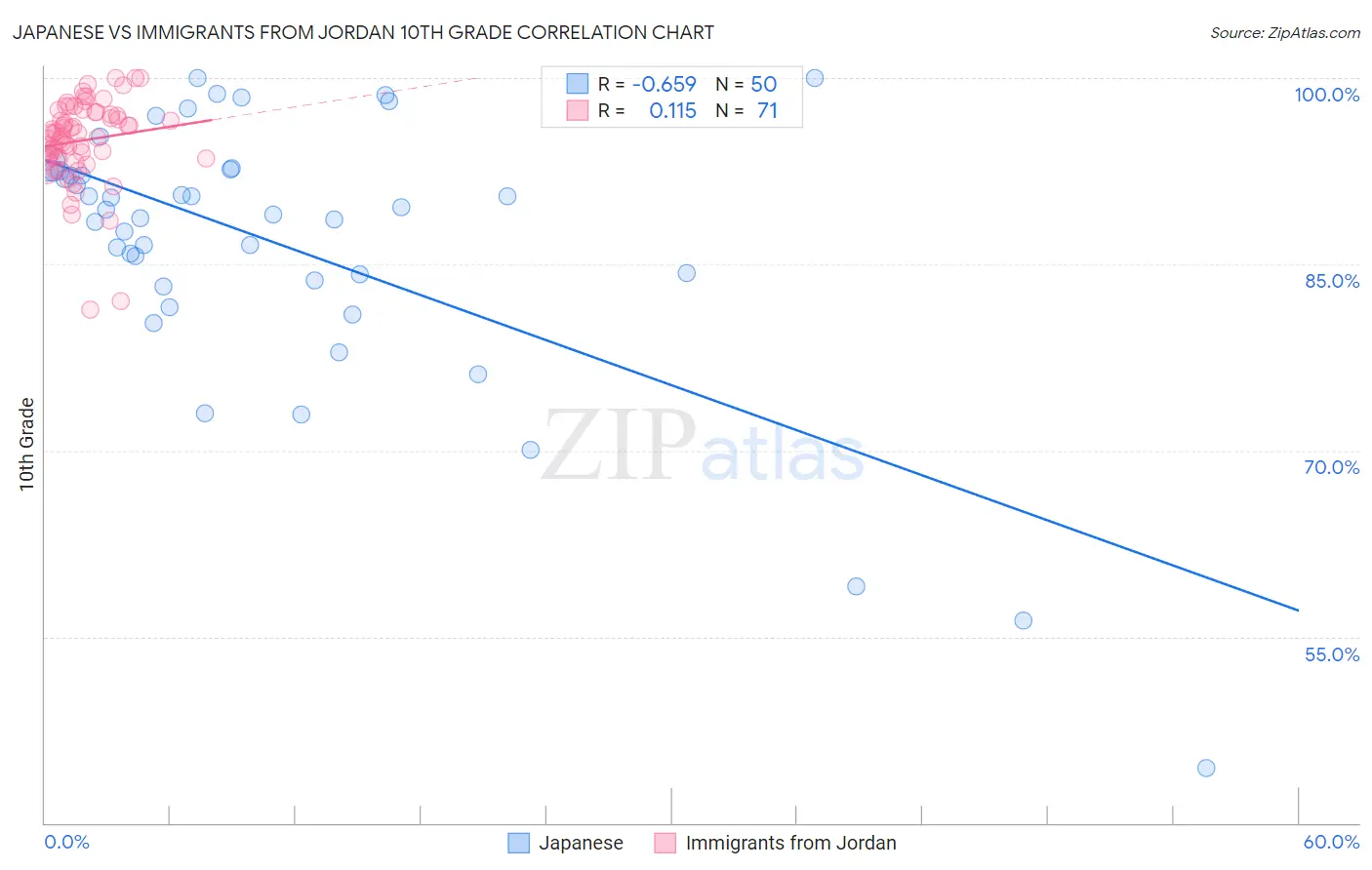 Japanese vs Immigrants from Jordan 10th Grade Correlation Chart