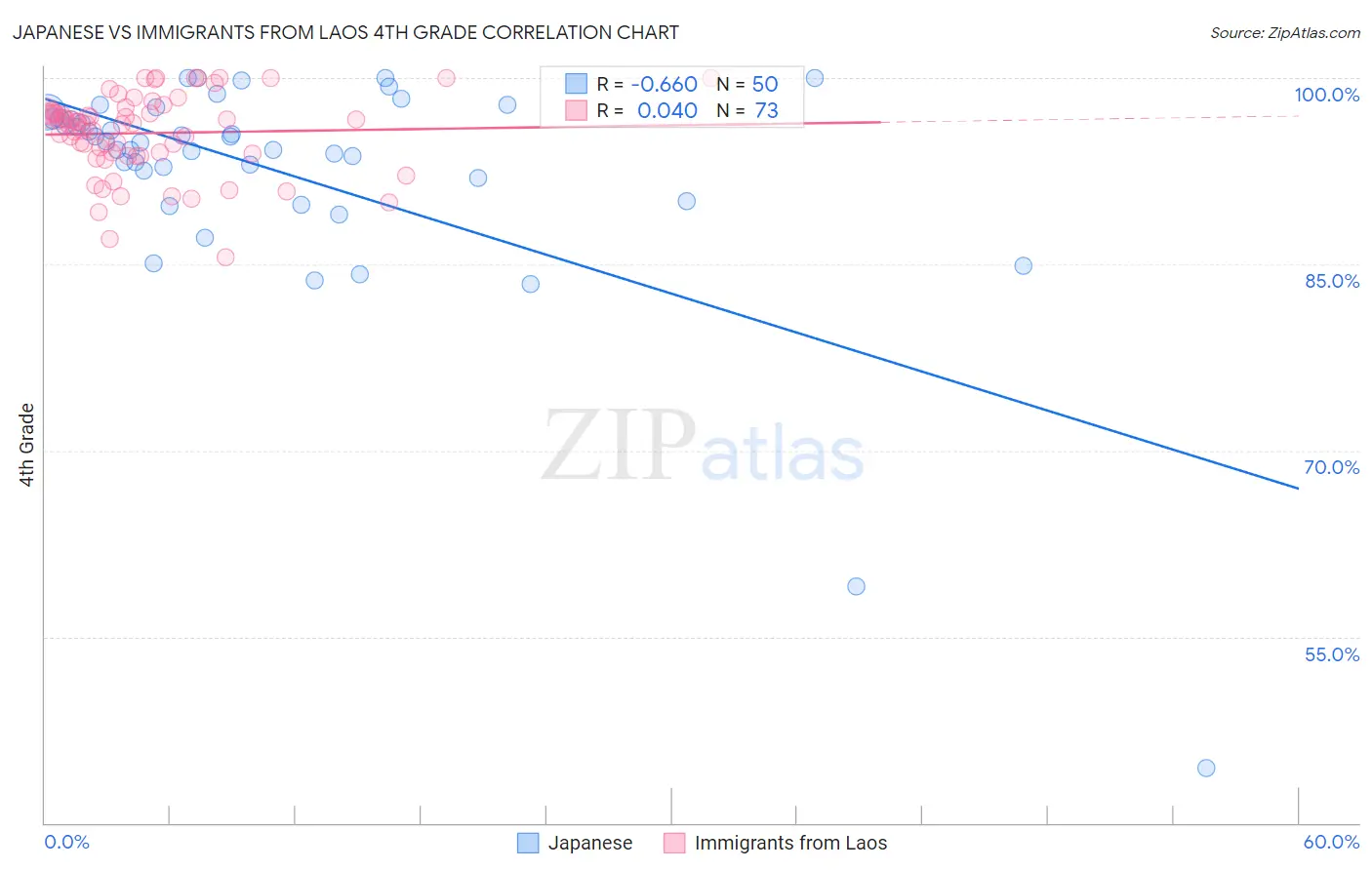 Japanese vs Immigrants from Laos 4th Grade Correlation Chart