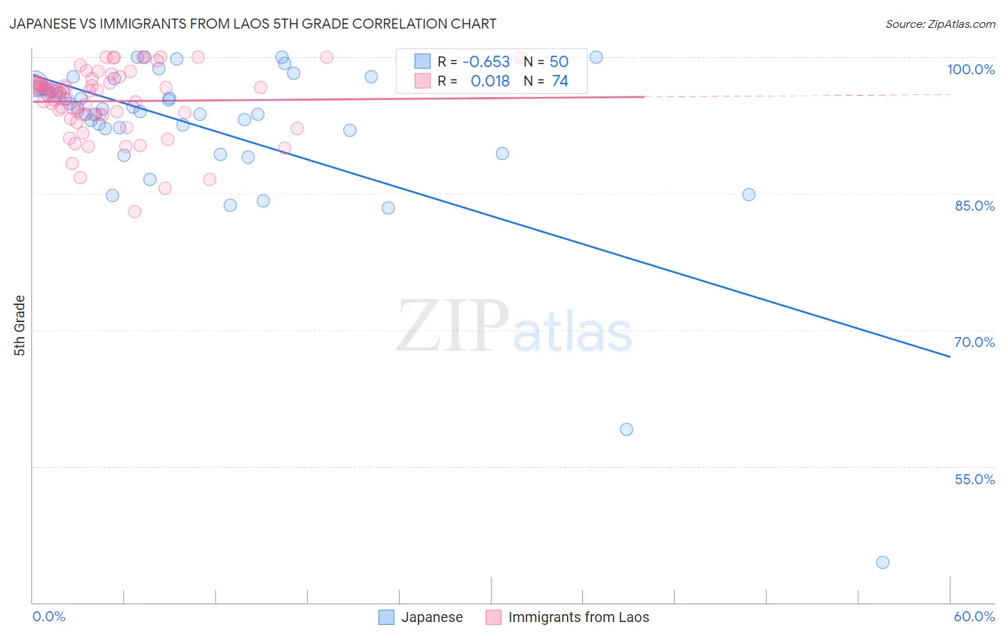 Japanese vs Immigrants from Laos 5th Grade Correlation Chart