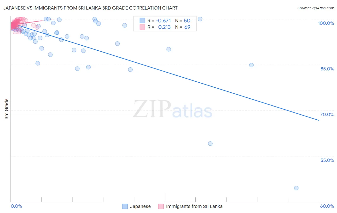 Japanese vs Immigrants from Sri Lanka 3rd Grade Correlation Chart