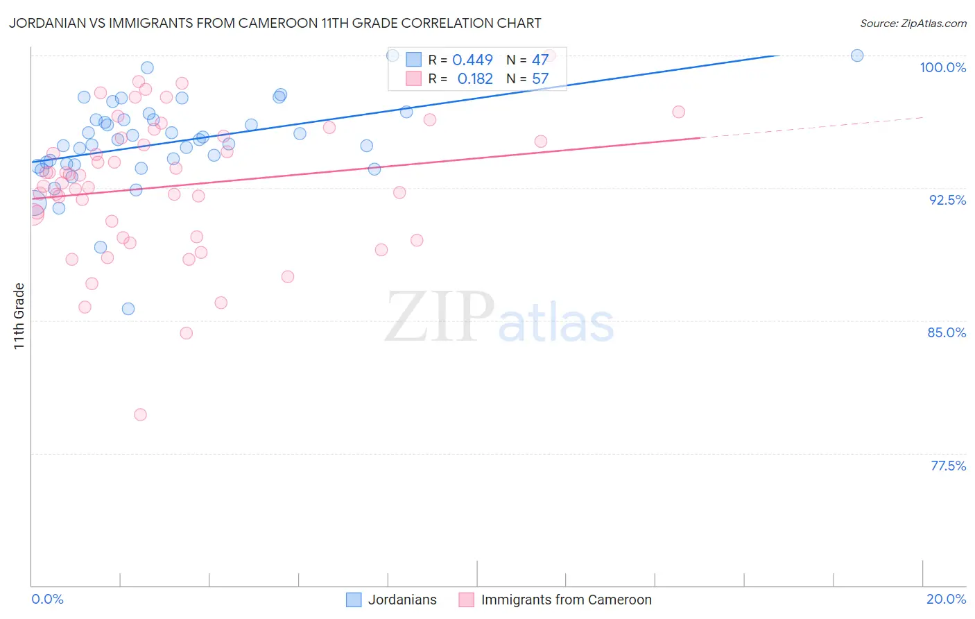 Jordanian vs Immigrants from Cameroon 11th Grade Correlation Chart