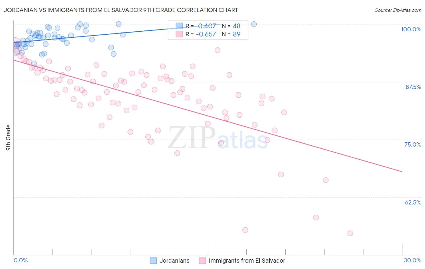 Jordanian vs Immigrants from El Salvador 9th Grade Correlation Chart