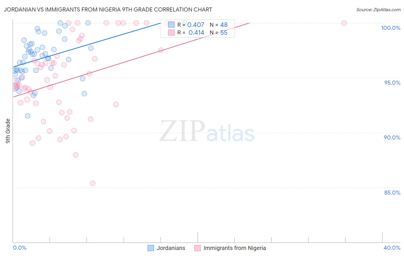Jordanian vs Immigrants from Nigeria 9th Grade Correlation Chart