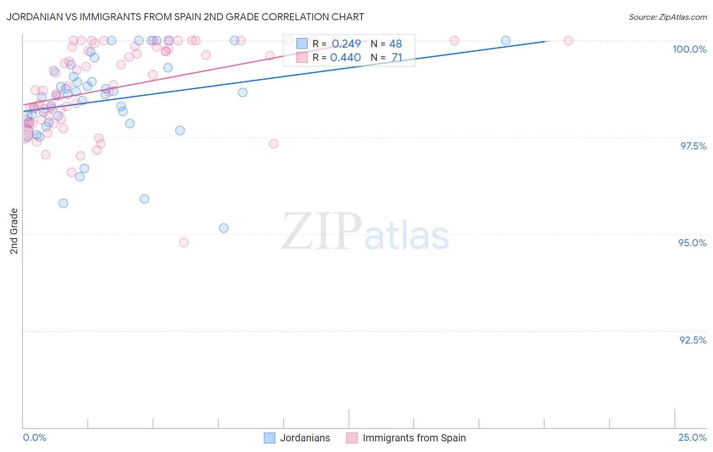 Jordanian vs Immigrants from Spain 2nd Grade Correlation Chart