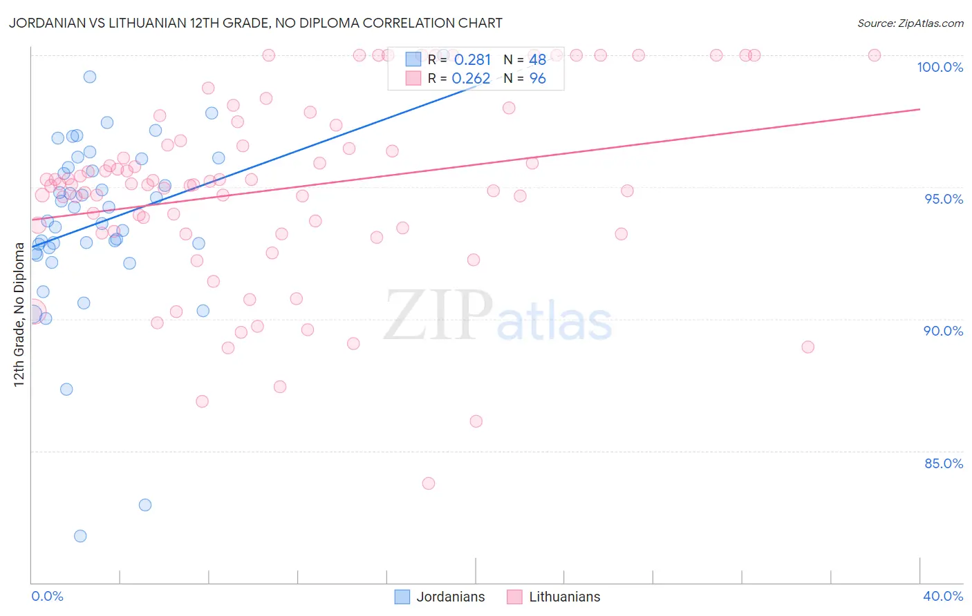 Jordanian vs Lithuanian 12th Grade, No Diploma Correlation Chart