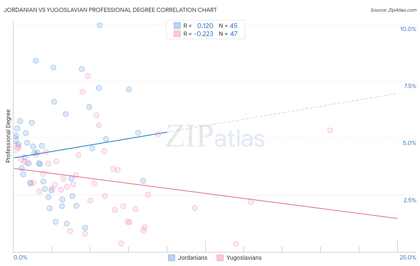Jordanian vs Yugoslavian Professional Degree Correlation Chart