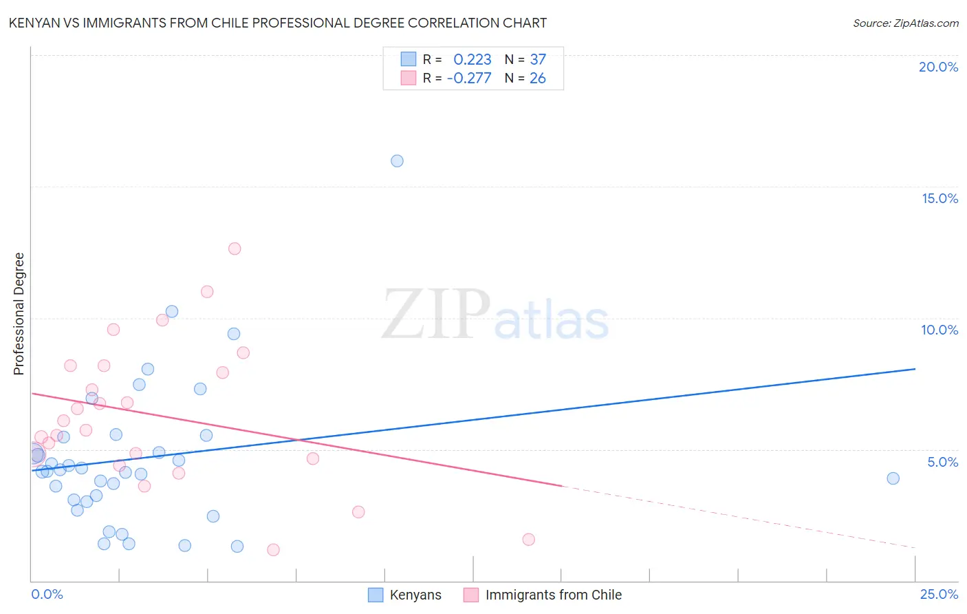 Kenyan vs Immigrants from Chile Professional Degree Correlation Chart