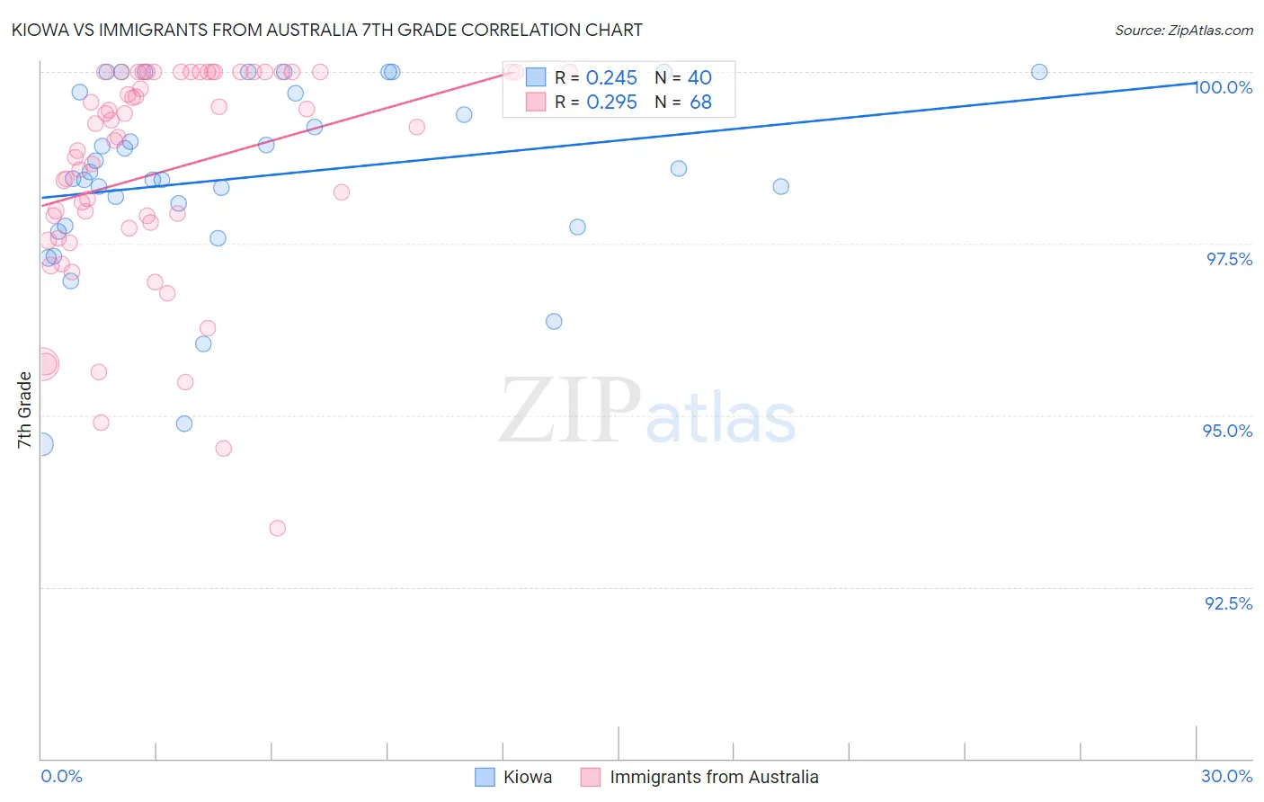 Kiowa vs Immigrants from Australia 7th Grade Correlation Chart
