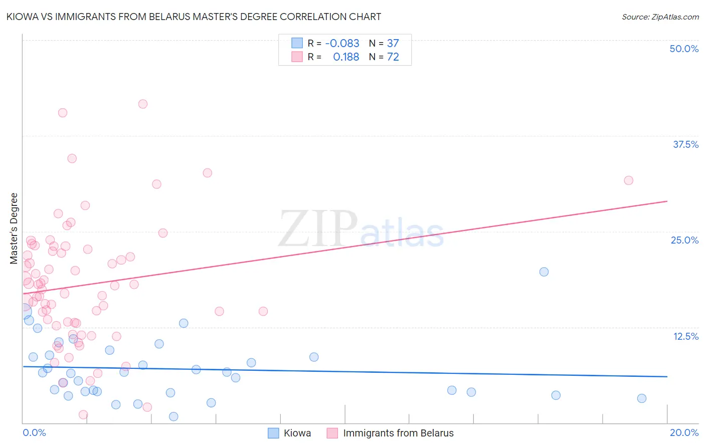 Kiowa vs Immigrants from Belarus Master's Degree Correlation Chart