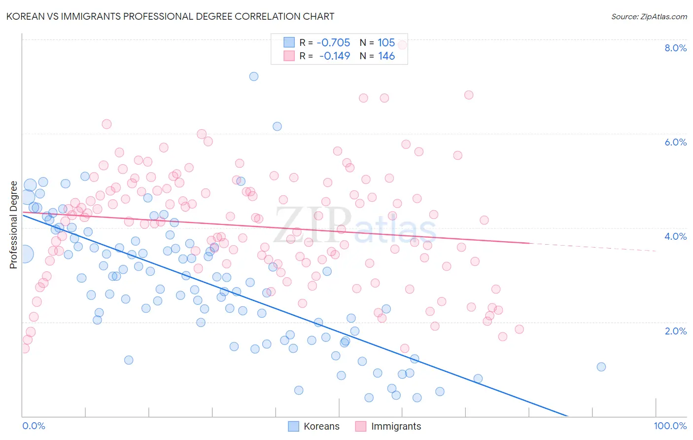 Korean vs Immigrants Professional Degree Correlation Chart
