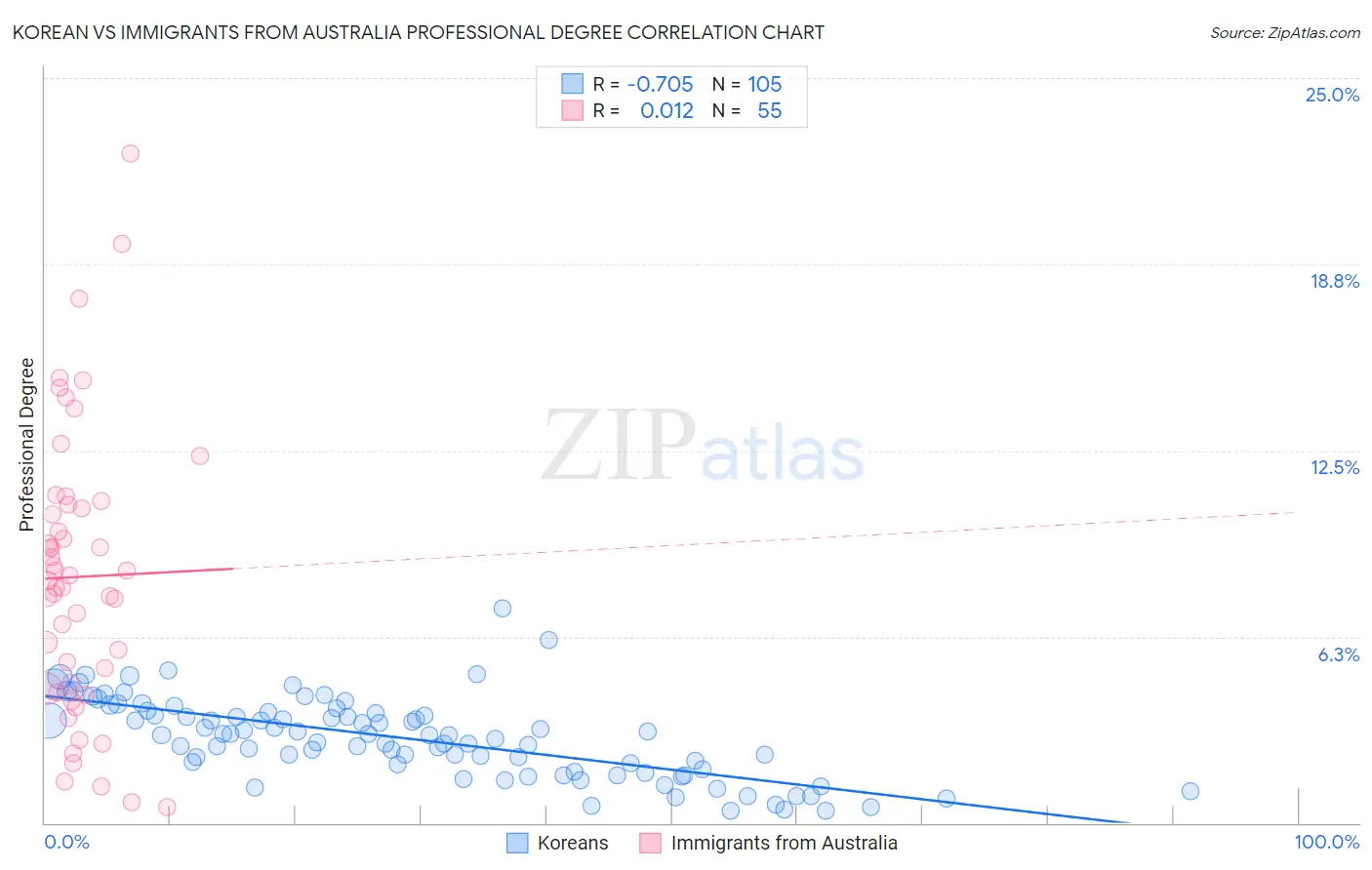 Korean vs Immigrants from Australia Professional Degree Correlation Chart