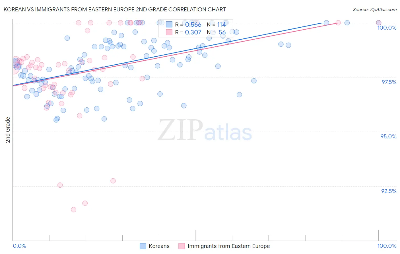 Korean vs Immigrants from Eastern Europe 2nd Grade Correlation Chart