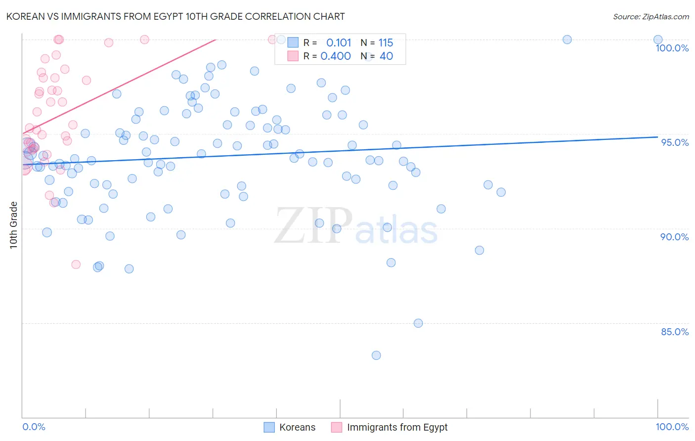 Korean vs Immigrants from Egypt 10th Grade Correlation Chart