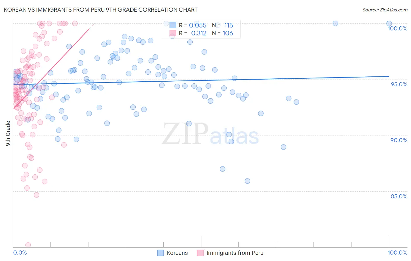 Korean vs Immigrants from Peru 9th Grade Correlation Chart