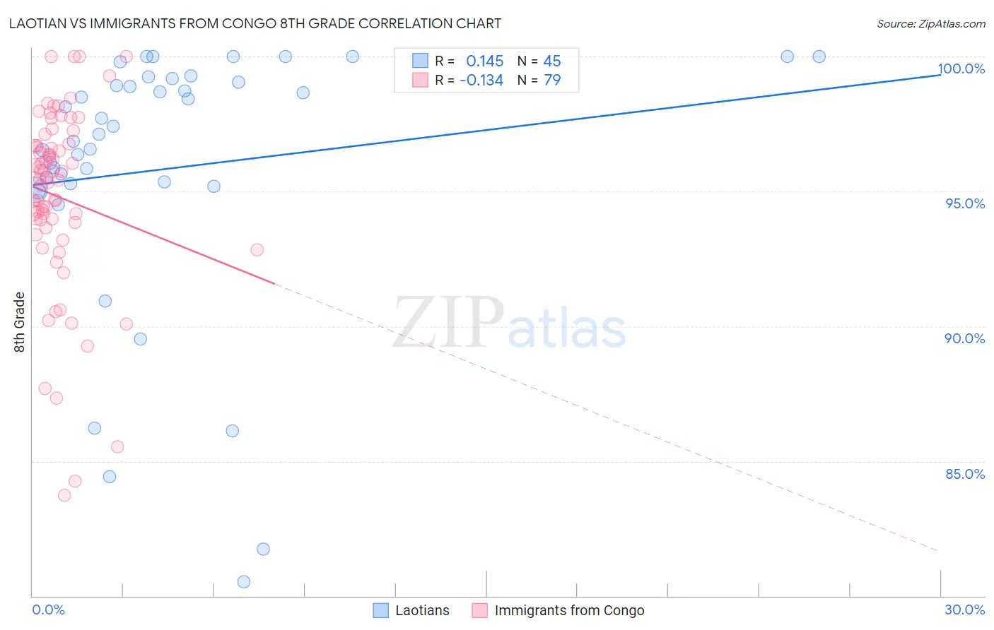 Laotian vs Immigrants from Congo 8th Grade Correlation Chart