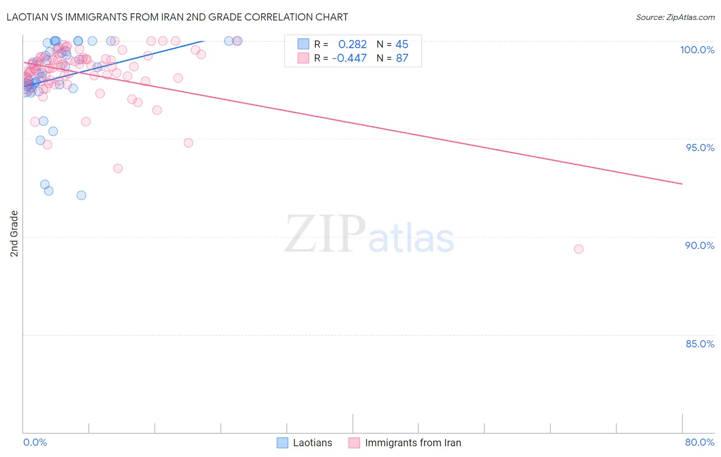 Laotian vs Immigrants from Iran 2nd Grade Correlation Chart