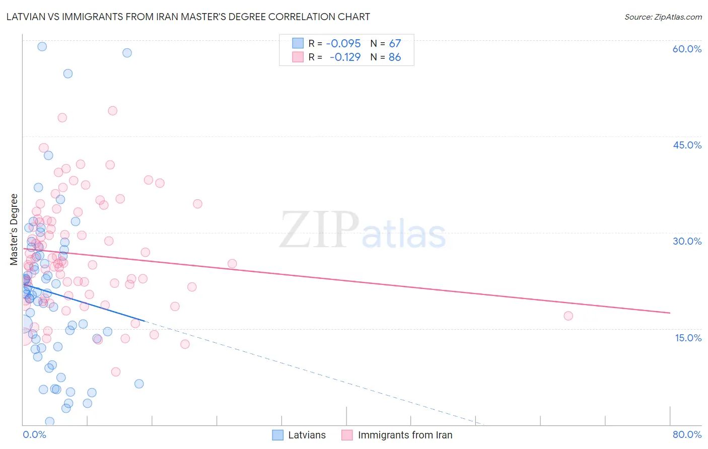 Latvian vs Immigrants from Iran Master's Degree Correlation Chart