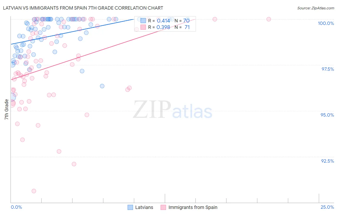 Latvian vs Immigrants from Spain 7th Grade Correlation Chart