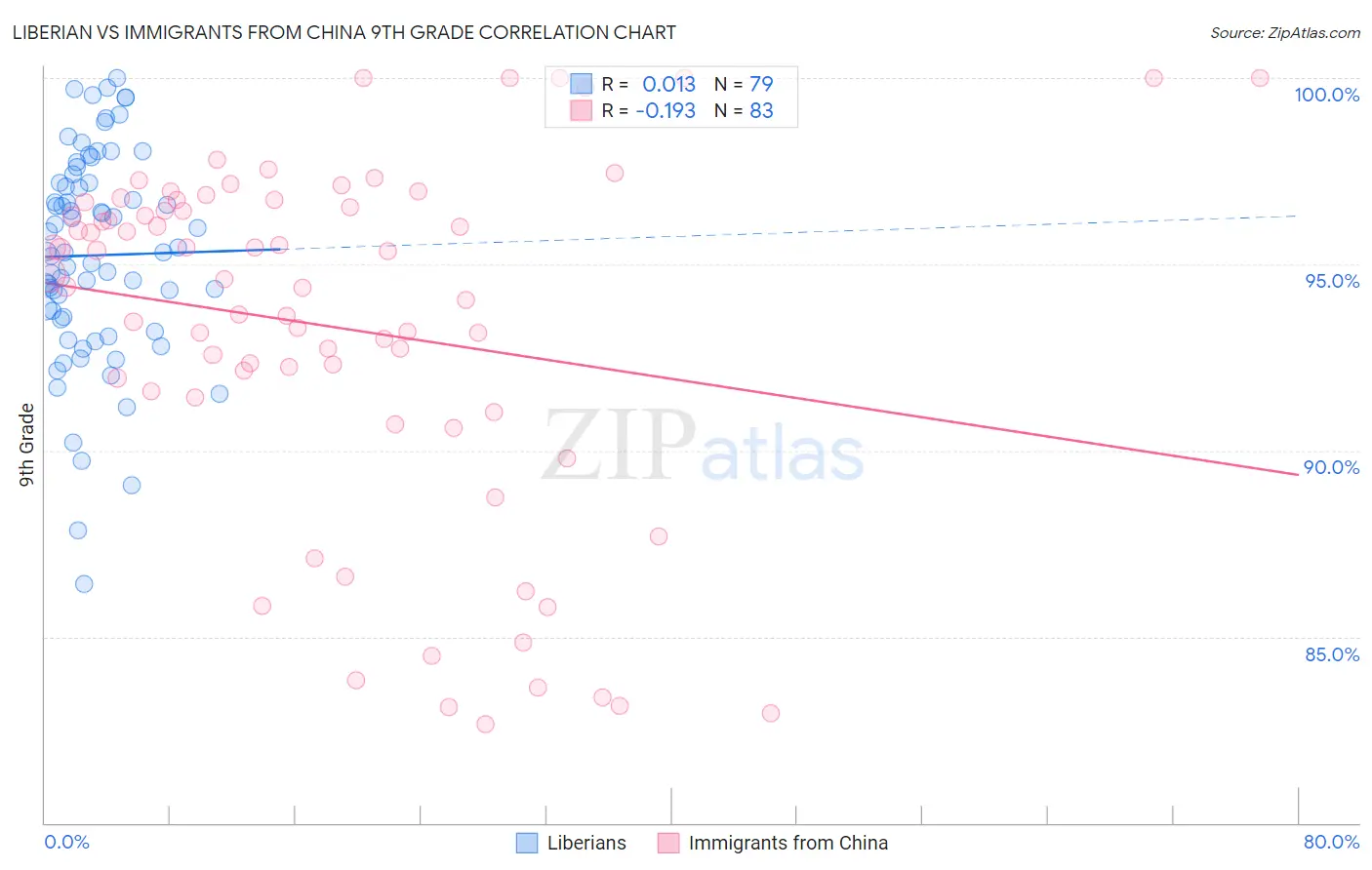 Liberian vs Immigrants from China 9th Grade Correlation Chart