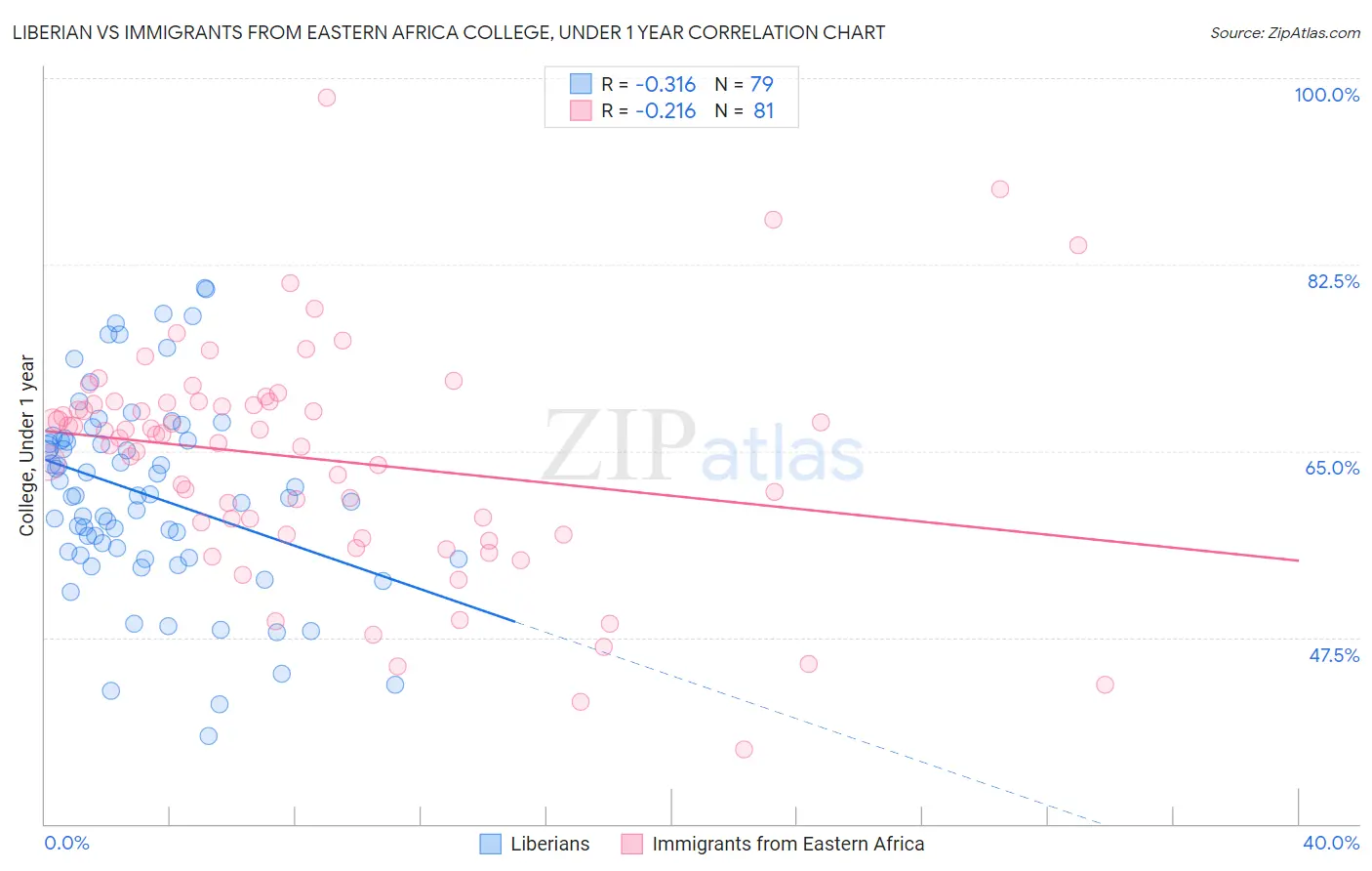 Liberian vs Immigrants from Eastern Africa College, Under 1 year