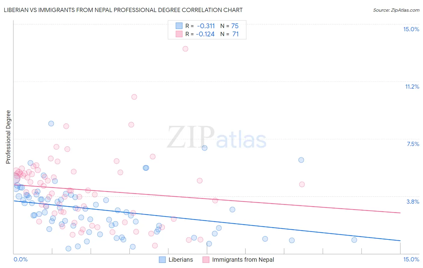 Liberian vs Immigrants from Nepal Professional Degree Correlation Chart