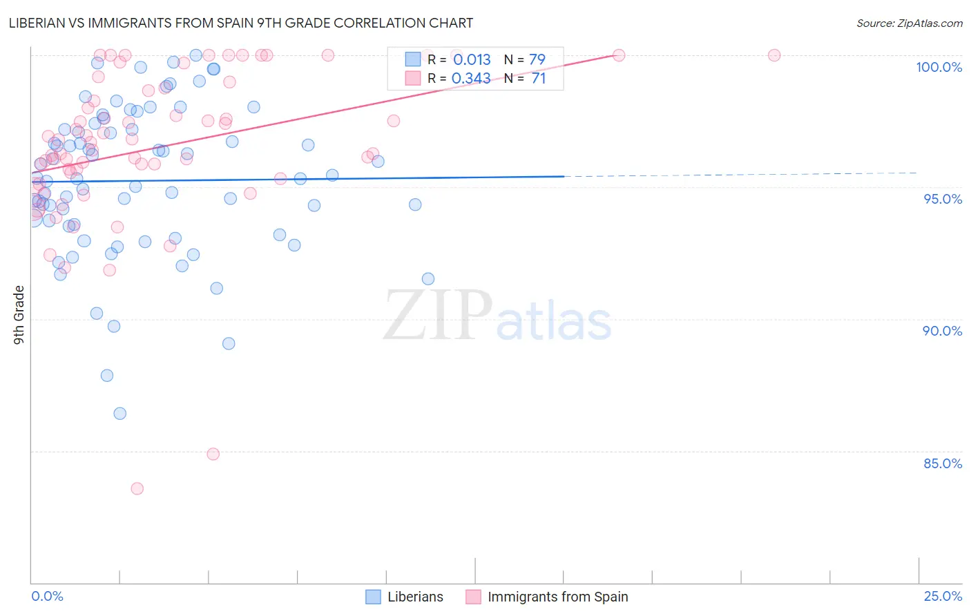 Liberian vs Immigrants from Spain 9th Grade Correlation Chart