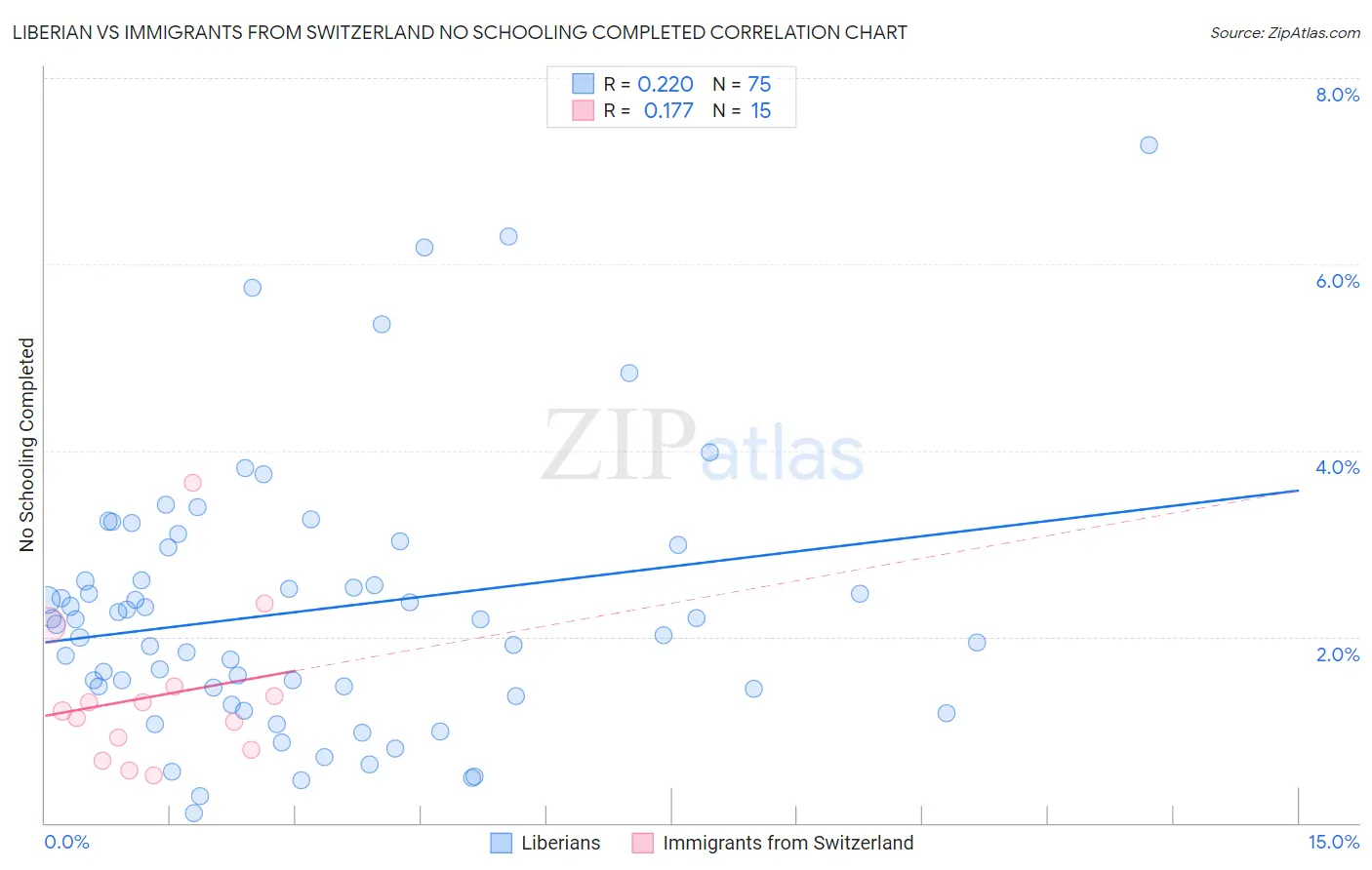 Liberian vs Immigrants from Switzerland No Schooling Completed Correlation Chart