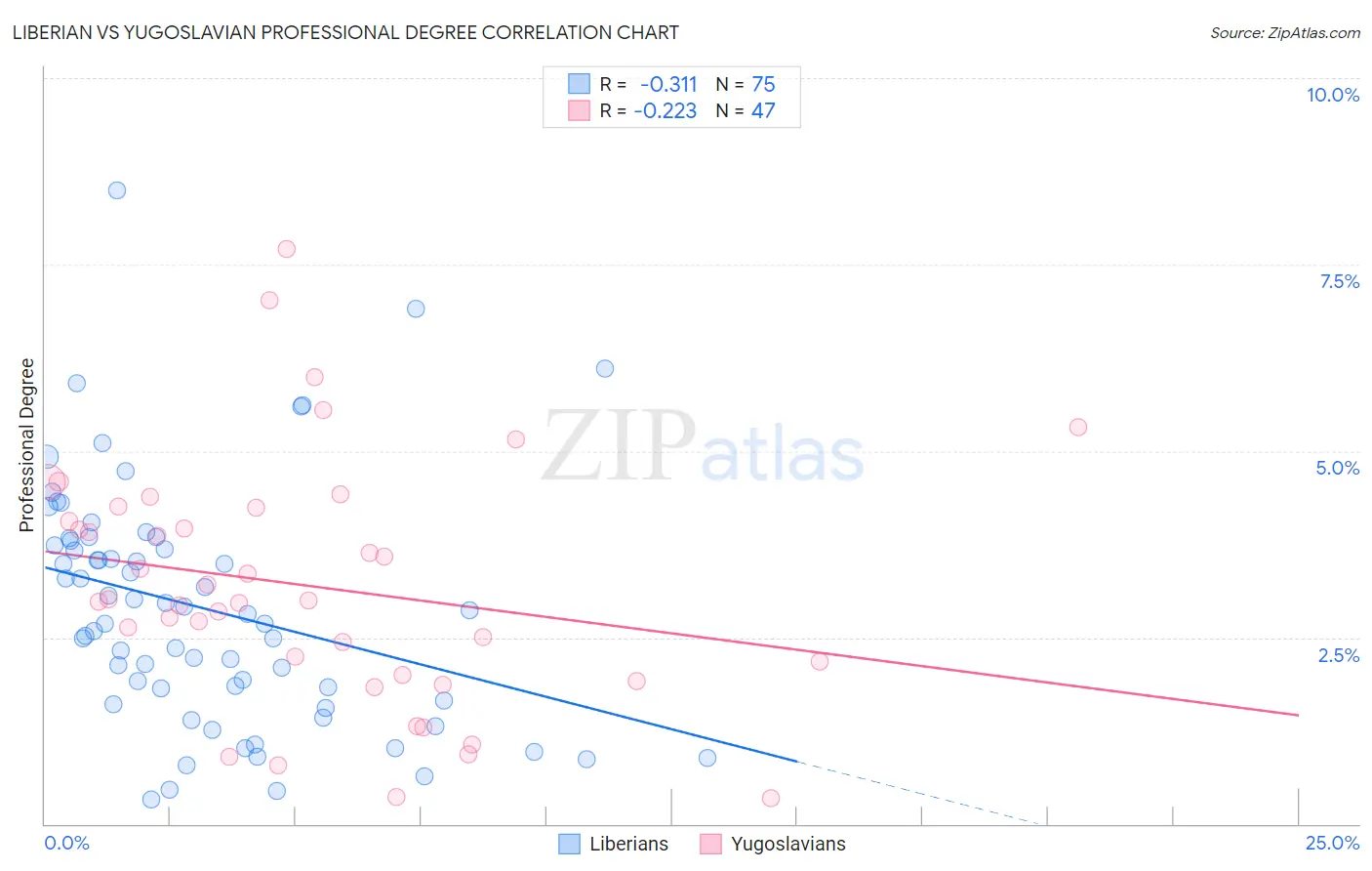 Liberian vs Yugoslavian Professional Degree Correlation Chart