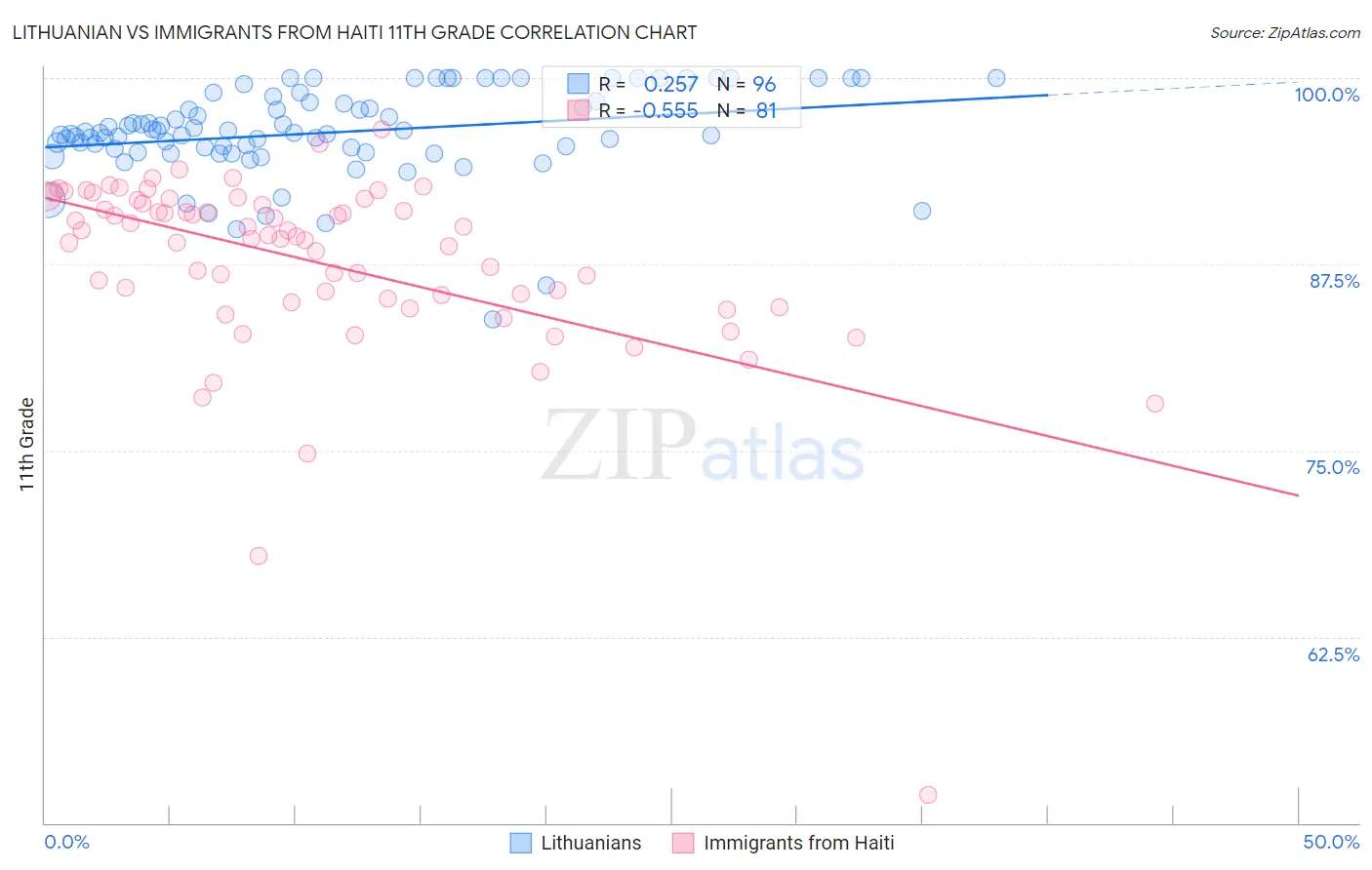 Lithuanian vs Immigrants from Haiti 11th Grade Correlation Chart