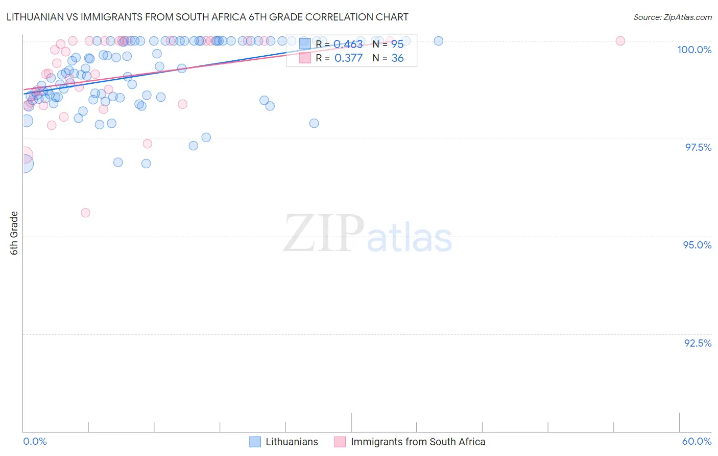 Lithuanian vs Immigrants from South Africa 6th Grade Correlation Chart