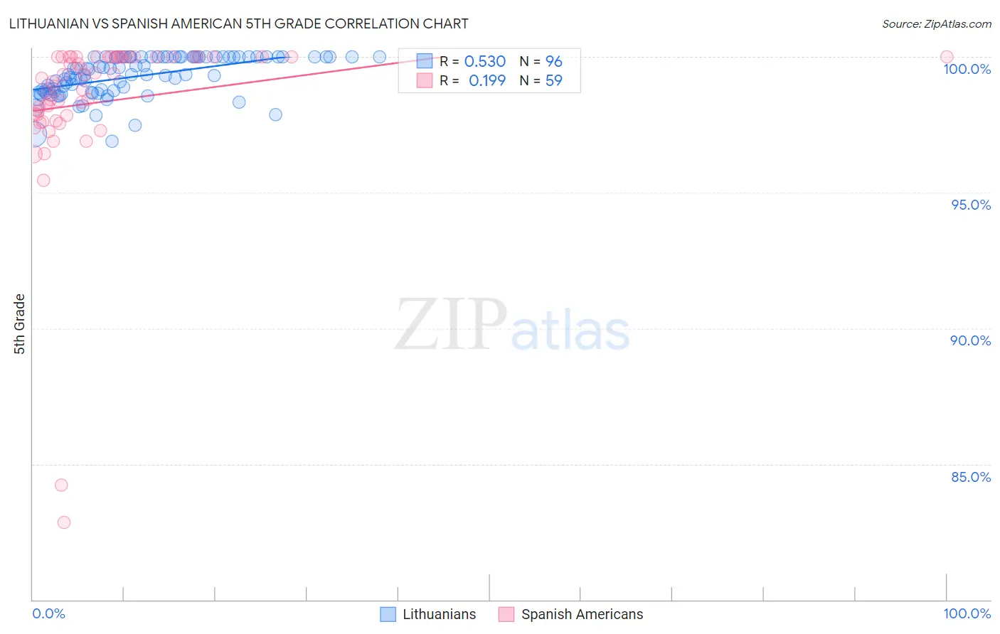 Lithuanian vs Spanish American 5th Grade Correlation Chart