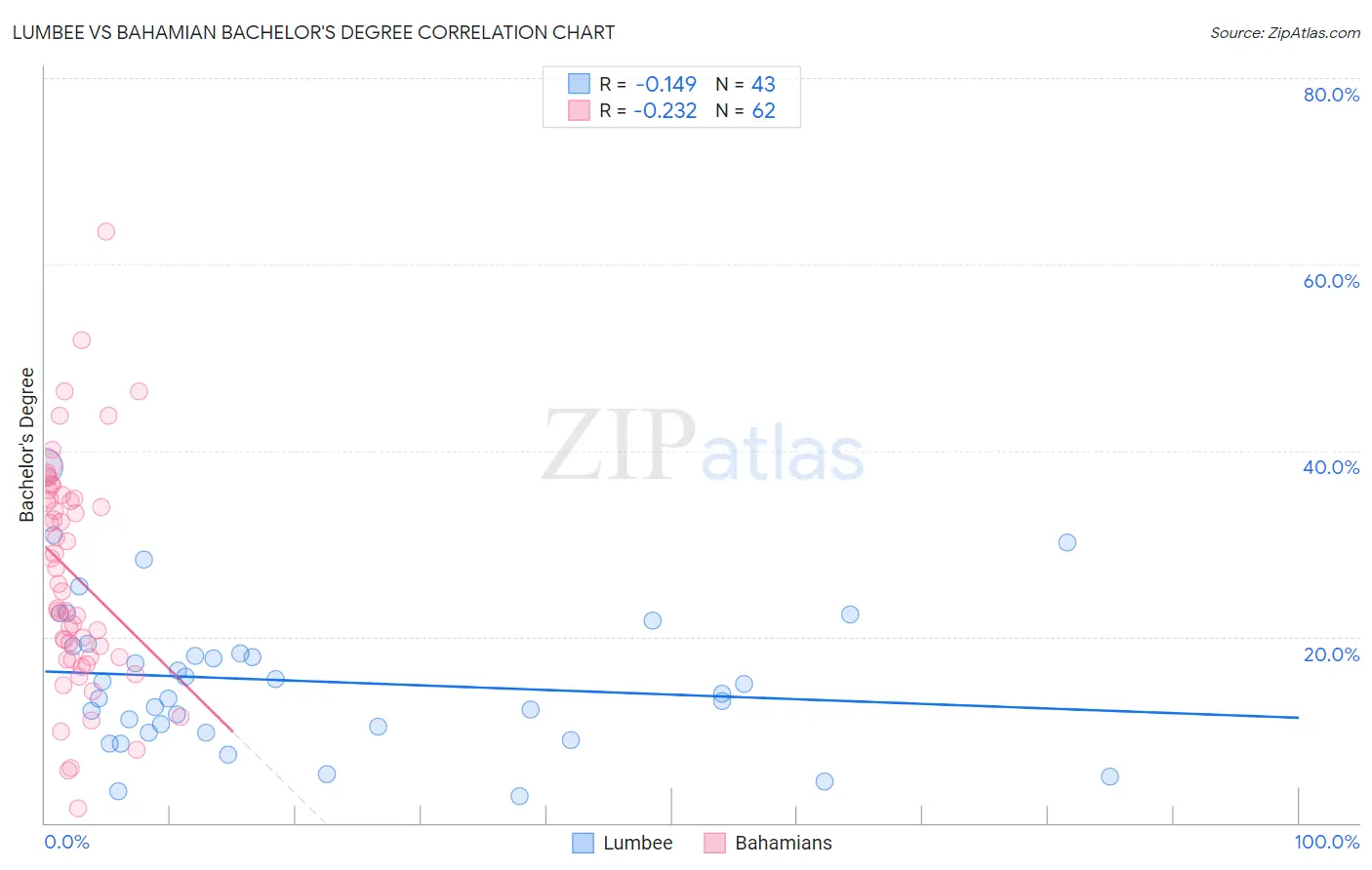 Lumbee vs Bahamian Bachelor's Degree Correlation Chart