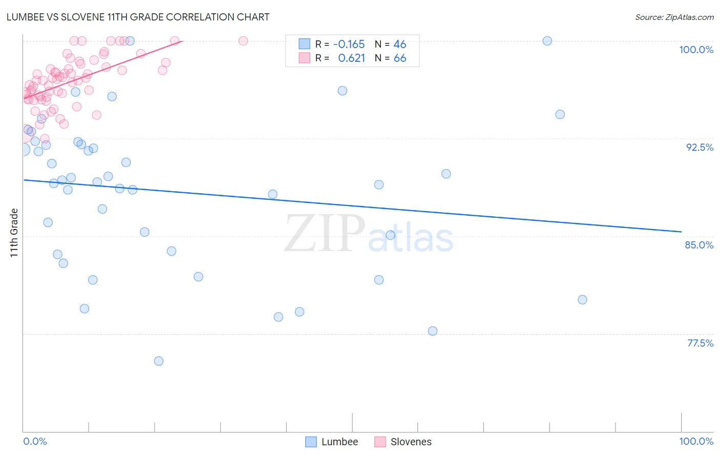 Lumbee vs Slovene 11th Grade Correlation Chart