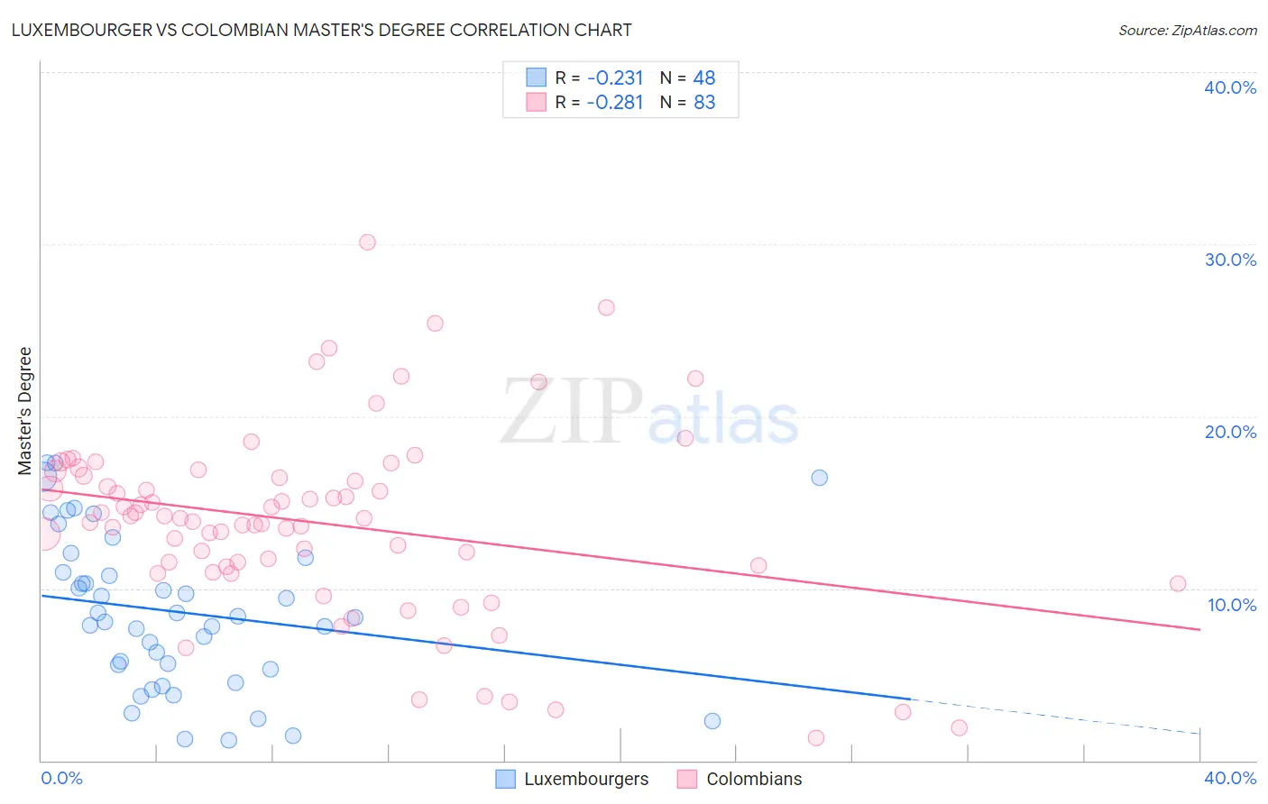 Luxembourger vs Colombian Master's Degree Correlation Chart