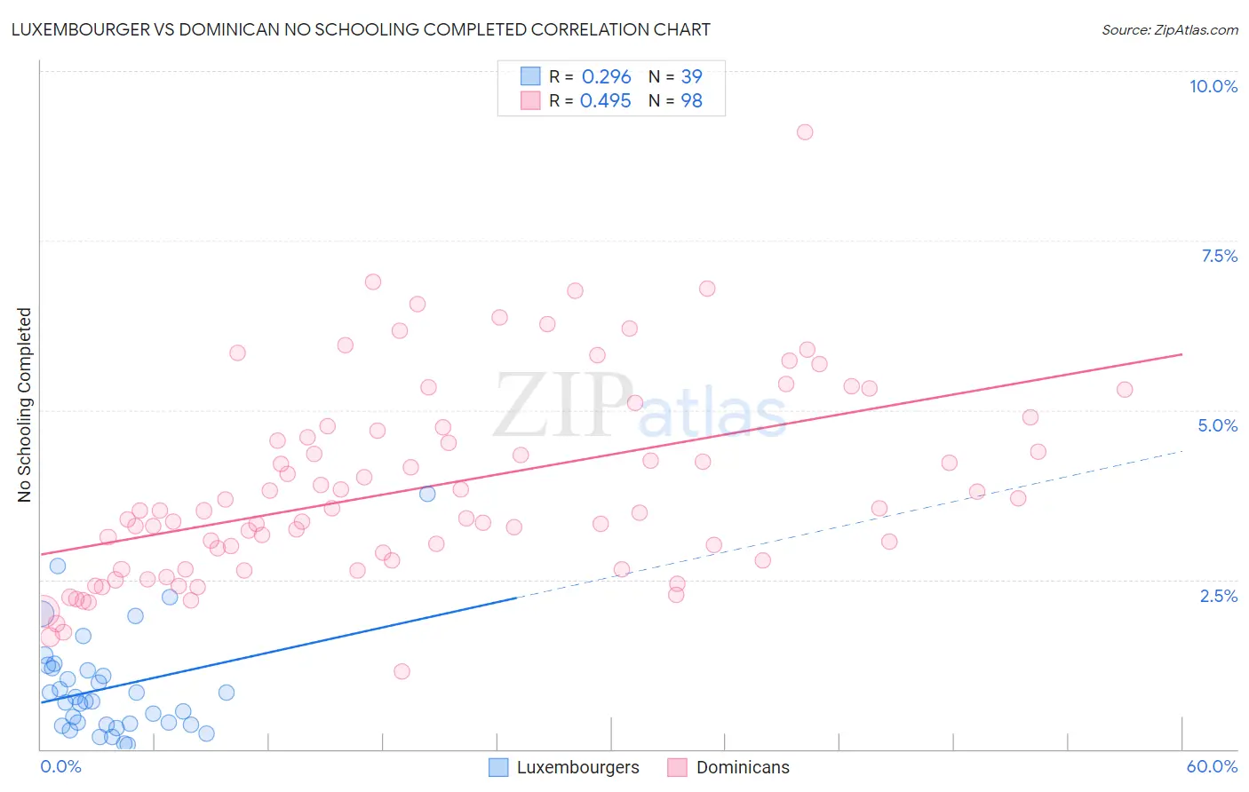 Luxembourger vs Dominican No Schooling Completed Correlation Chart