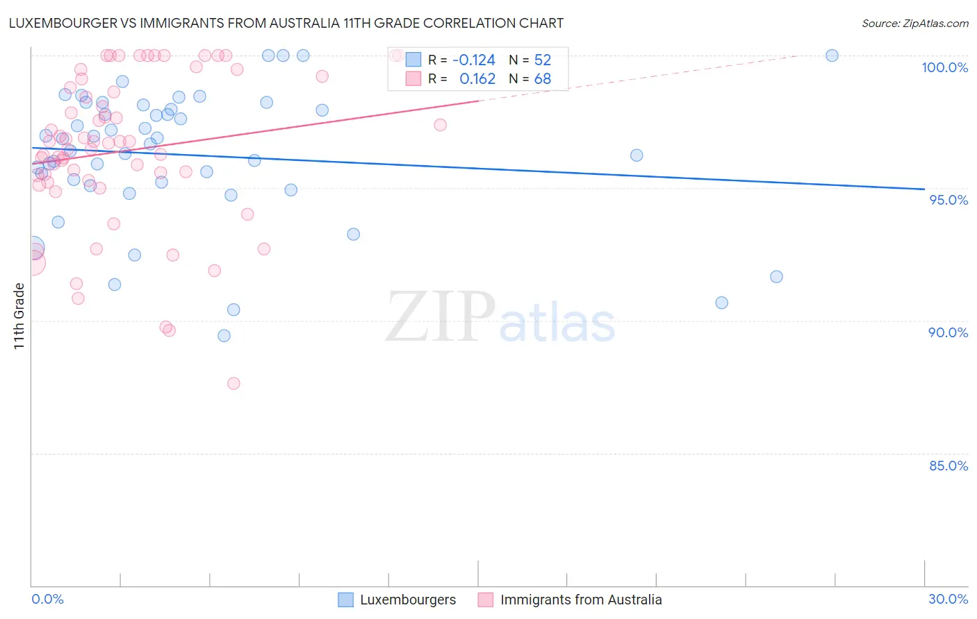 Luxembourger vs Immigrants from Australia 11th Grade Correlation Chart