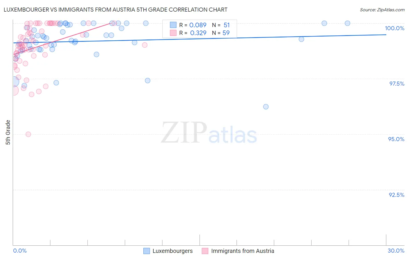 Luxembourger vs Immigrants from Austria 5th Grade Correlation Chart