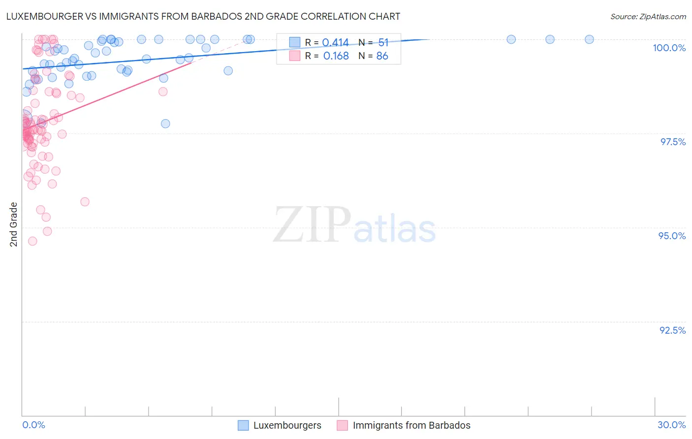 Luxembourger vs Immigrants from Barbados 2nd Grade Correlation Chart