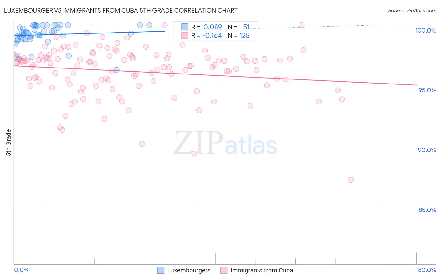 Luxembourger vs Immigrants from Cuba 5th Grade Correlation Chart
