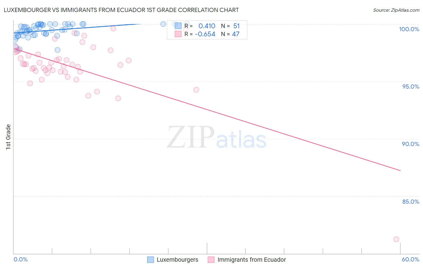 Luxembourger vs Immigrants from Ecuador 1st Grade Correlation Chart