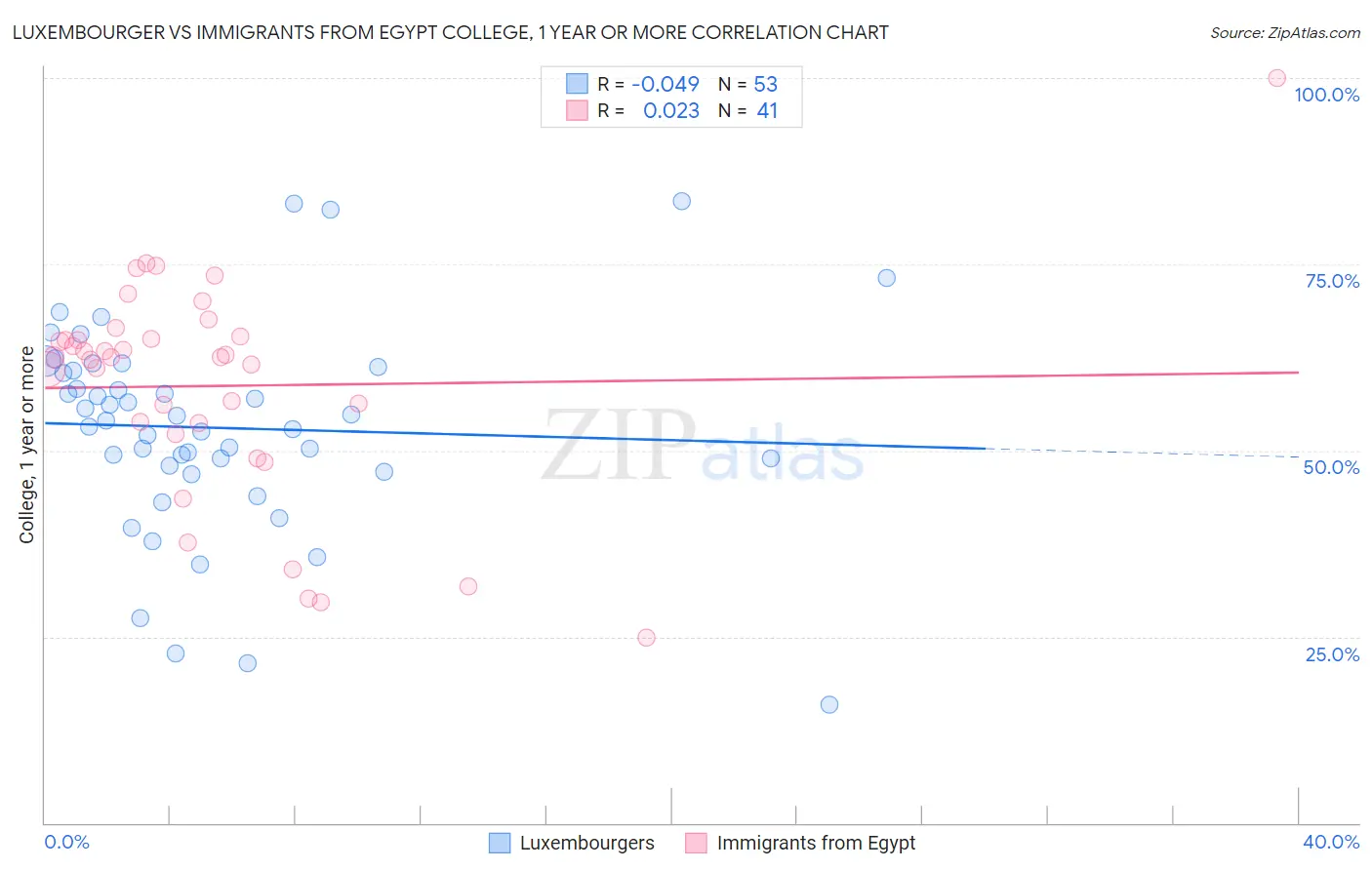 Luxembourger vs Immigrants from Egypt College, 1 year or more Correlation Chart