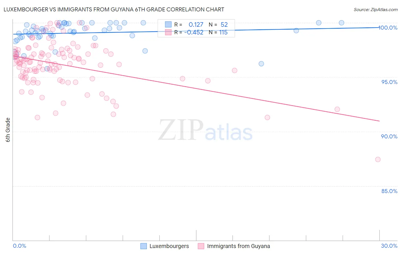 Luxembourger vs Immigrants from Guyana 6th Grade Correlation Chart