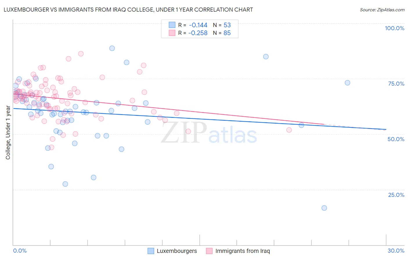 Luxembourger vs Immigrants from Iraq College, Under 1 year Correlation Chart