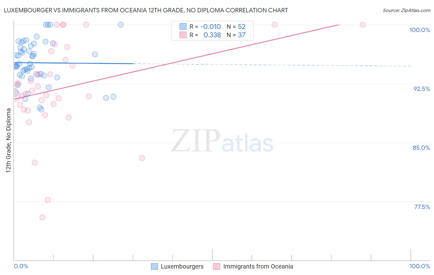 Luxembourger vs Immigrants from Oceania 12th Grade, No Diploma Correlation Chart