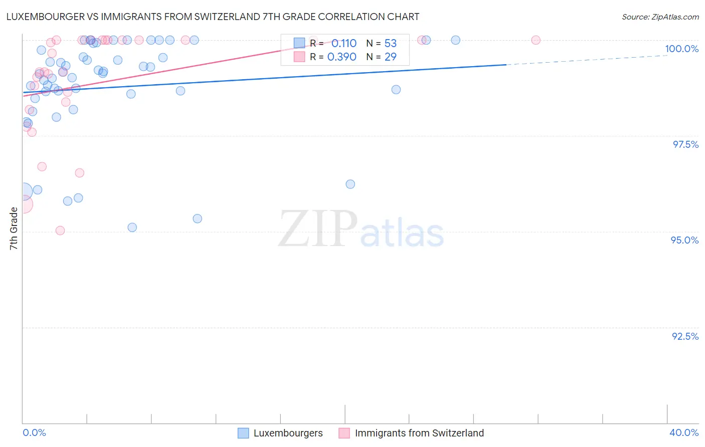 Luxembourger vs Immigrants from Switzerland 7th Grade Correlation Chart