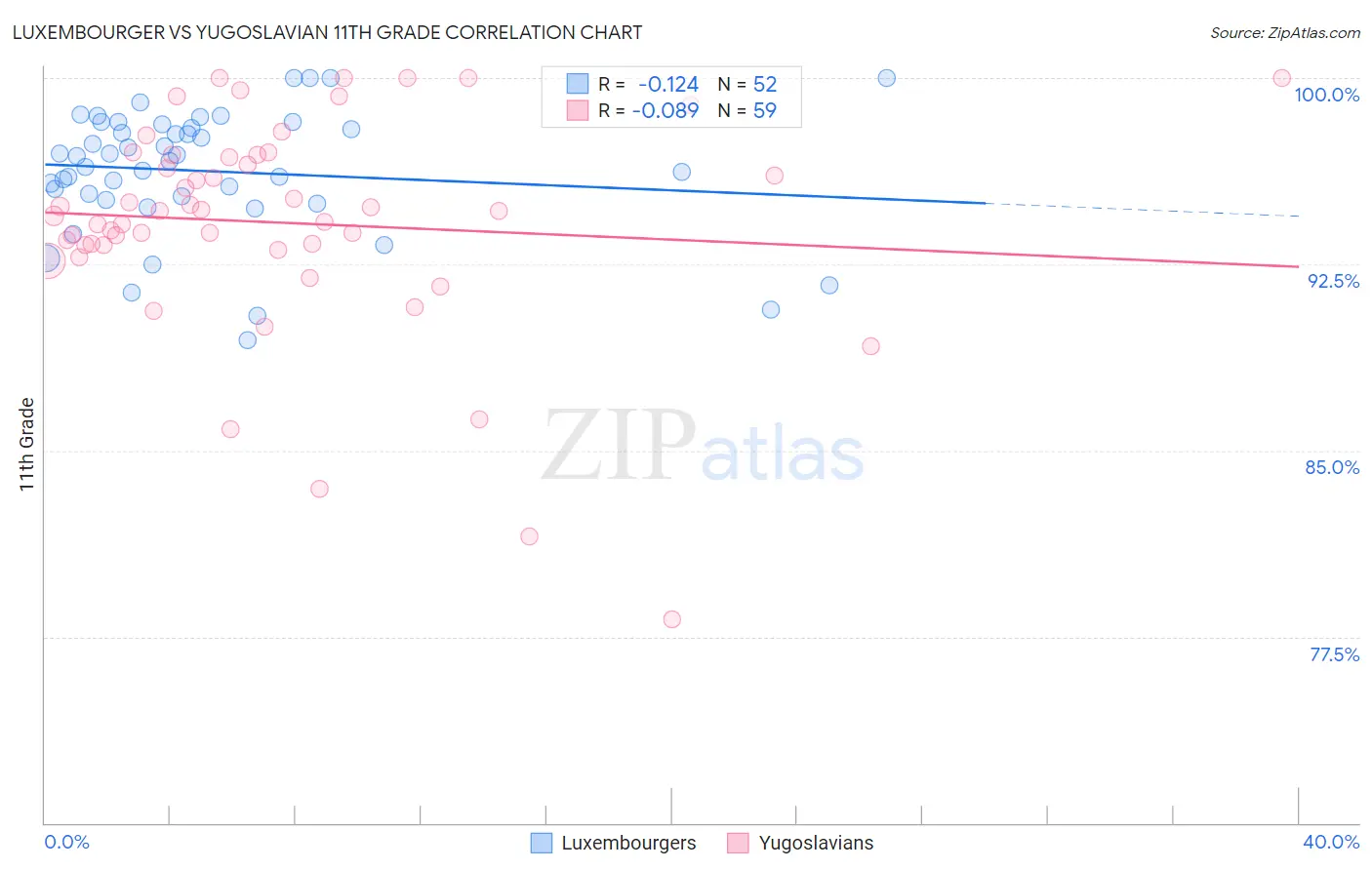 Luxembourger vs Yugoslavian 11th Grade Correlation Chart